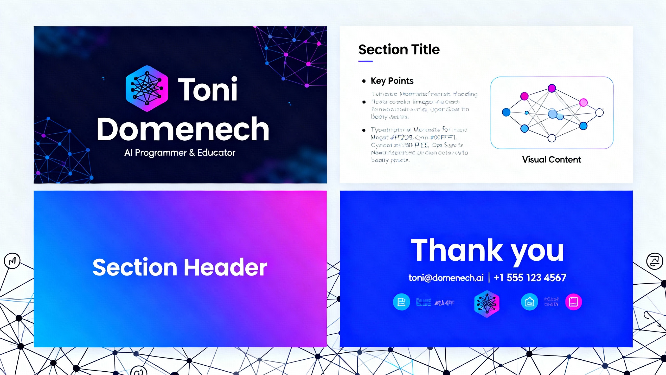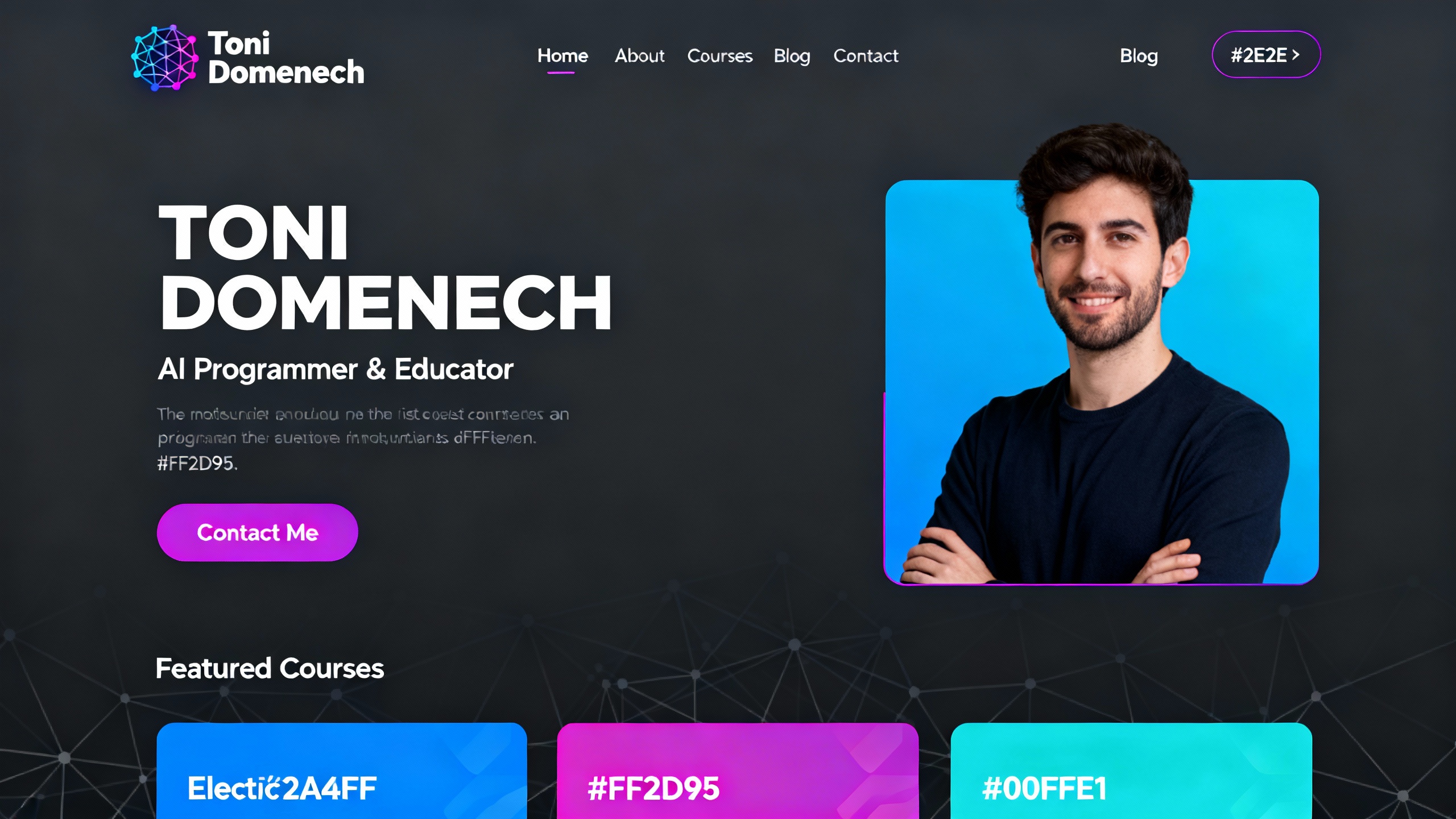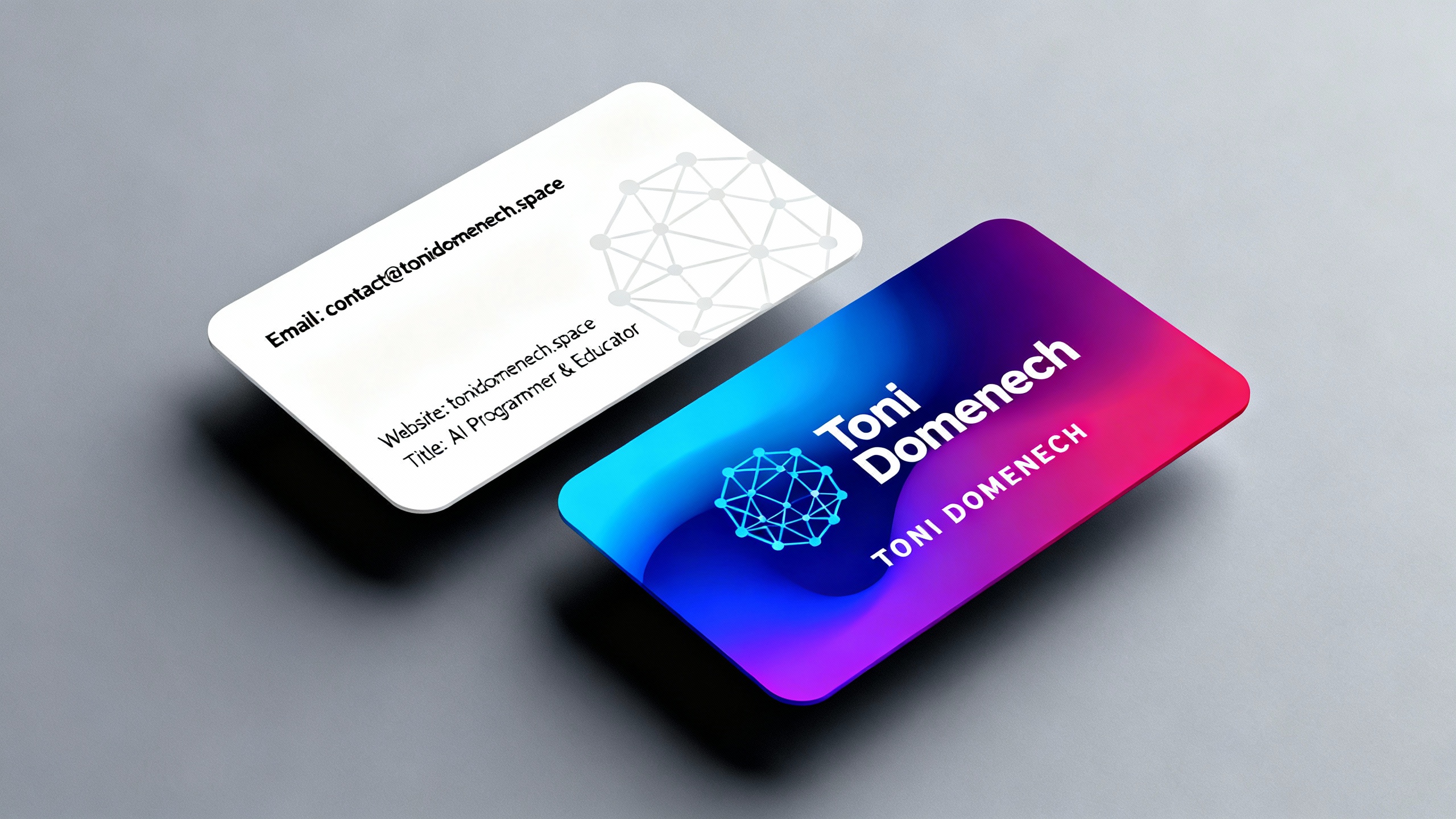 • Prompt: Créame la imagen de marca personal Toni Doménech. Necesito: logo, paletas de colores a usar, tipografías, libro de marca y cualquier otro material necesario para que esté completo, mi web es https://tonidomenech.space